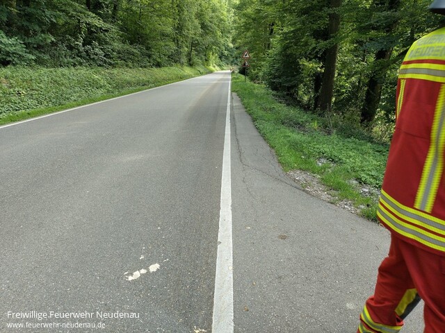 ![]() ![]() ![]() | Eine Ölspur wurde auf der L 526 im Schefflenztal gemeldet. Durch die Leitstelle (ILS HN) wurde daraufhin die Einsatzabteilung (EA) Herbolzheim alarmiert. Vor Ort stellten die Kameraden fest, dass die Verunreinigung der Fahrbahn pflanzlicher Natur ist. Es roch nach Most oder Obsttrester. Dennoch war eine Gefahr, insbesondere für Zweiräder, nicht auszuschließen. Deshalb wurden entsprechende Gefahrenzeichen aufgestellt. Einsatzende war gegen 18.50 Uhr. | |||