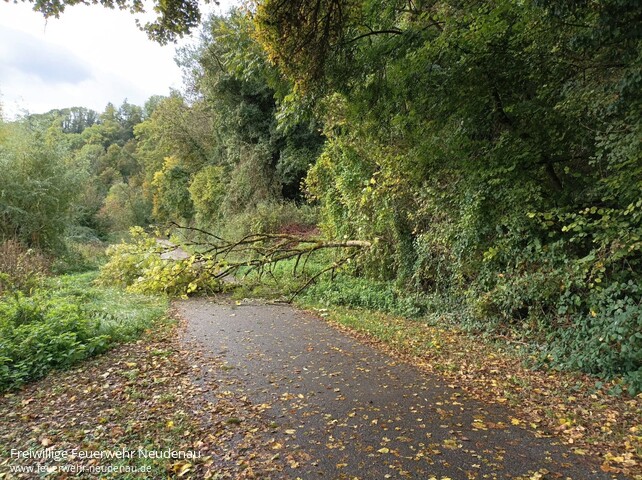 ![]() ![]() ![]() | Erneut wurde die Einsatzabteilung Neudenau zu einem umgestürzten Baum alarmiert. Dieses Mal auf den Radweg in Richtung Herbolzheim. Die Kleinalarm-Gruppe der Einsatzabteilung beseitigte das Verkehrshindernis und reinigte die Straße. | ||