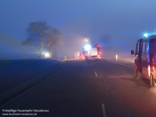 ![]() | Auf Anforderung des Rettungsdienstes wurde die Freiwillige Feuerwehr Neudenau auf die Kreisstraße zwischen Reichertshausen und Bittelbronn alarmiert. Die ersteintreffenden Feuerwehrkräfte konnten keine Verrauchung feststellen. Die Fahrzeugführerin wurde bereits im Rettungswagen behandelt. Der Brandschutz wurde sichergestellt und beim Unfallfahrzeug wurden sowohl der Hoch- als auch der Niedervoltbereich stromlos gemacht. Anschließend konnte die Einsatzstelle der Polizei übergeben werden. | |||||||