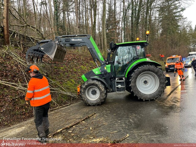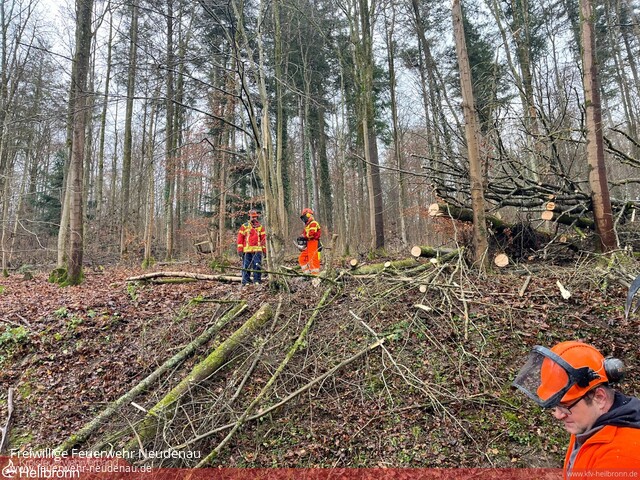 ![]() ![]() ![]() | Zum „Windbruch“ wurde die Einsatzabteilung Neudenau bei stürmischem Wetter auf die L526 zwischen Herbolzheim und Allfeld alarmiert. Mehrere Bäume waren hier auf die Fahrbahn gestürzt. Gemeinsam mit den Kollegen vom Bauhof wurden die Bäume entfernt und die Straße anschließend grob gereinigt. Während der Maßnahmen musste die Straße voll gesperrt werden. Einsatzende war gegen 12.15 Uhr. | ||