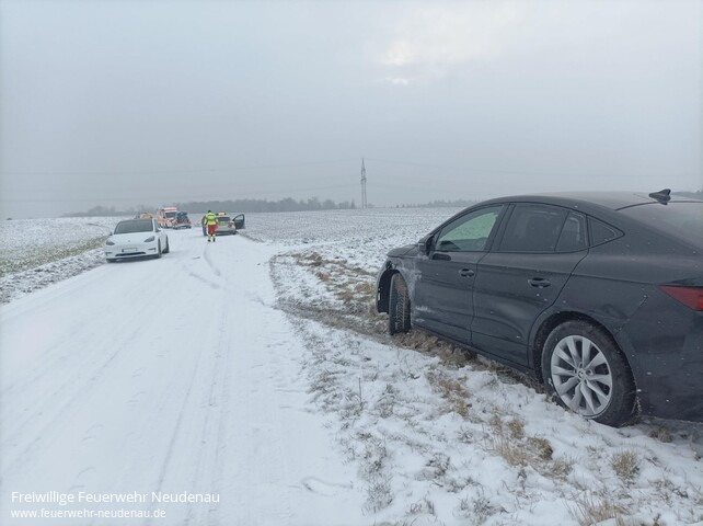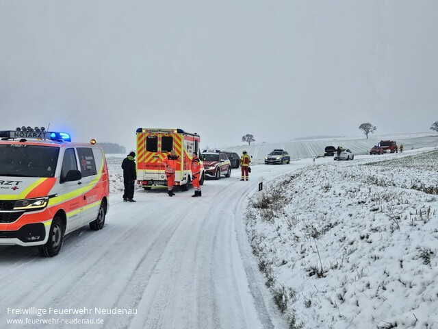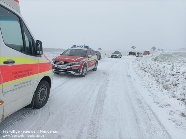 ![]() ![]() ![]() | Mit dem Einsatzstichwort „Verkehrsunfall / eCall“ wurde die Einsatzabteilung Siglingen auf die K2027 zwischen Kreßbach und Ernstein alarmiert. Unverzüglich wurde durch den Einsatzleiter die Einsatzabteilung Neudenau mit dem Technische-Hilfeleistungssatz nachalarmiert. Zwei Fahrzeuge hatten sich in einer Kurve auf spiegelglatter Fahrbahn touchiert und wurden beide in den Straßengraben gedrängt, bei beiden Fahrzeugen lösten die Airbags aus. So kam es zur eCall-Alarmierung, wo durch das Fahrzeug automatisch ein Notruf abgesetzt wird. Beim Eintreffen der ersten Kräfte konnte festgestellt werden, dass es keine Verletzten gab. Somit konnten die Neudenauer Kräfte ihre Anfahrt abbrechen, der Kommandowagen und das Staffellöschfahrzeug aus Siglingen fuhren weiter. Die Polizei wurde beim Absichern der Einsatzstelle unterstützt, außerdem wurden beide Unfallfahrzeuge stromlos gemacht. Anschließend konnte die Feuerwehr wieder abrücken. | |||||||||