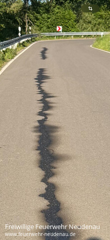 ![]() ![]() | In der Steiner Straße wurde eine Ölspur gemeldet, die Einsatzabteilung Neudenau alarmiert. Der Sachverhalt dort war bereits bekannt, es wurde dennoch kontrolliert: in der Woche zuvor waren Straßenschäden mit Bitumen ausgebessert worden. An einigen Stellen gleichten die Ausbesserungen einer Ölspur. | ||