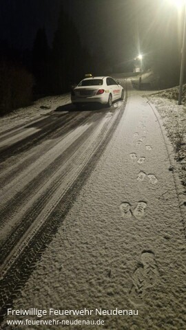 ![]() ![]() | Infolge Eisglätte war der Höchstberger Weg in Herbolzheim nicht mehr passierbar. Nachdem sich ein Unfall ereignet hatte und die Polizei vor Ort kam, ließ diese über die Leitstelle den Abteilungskommandanten verständigen. Nach telefonischer Alarmierung streuten drei Mann der Abteilung Herbolzheim das Gefällstück ab, so dass es wieder befahrbar war. | ||