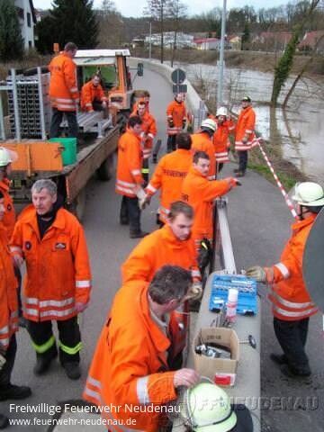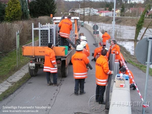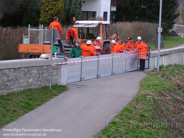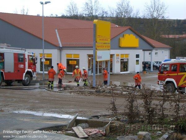 ![]() ![]() ![]() ![]() ![]() | Auch über dem nördlichen Landkreis wütete das Orkantief "Emma". Nachdem, laut Wetterdienst, gegen 08.15 Uhr mehr als 60 Liter pro Quadratmeter und Stunde niedergingen, wurde die Abteilung Neudenau um 08.39 Uhr per FME alarmiert. Ursächlicher Alarmierungsgrund war "überflutete Straße" an der Tankstelle bzw. Siglinger Straße. Noch vor dem Ausrücken des TLF wurde über Handy mitgeteilt, dass der Bahnübergang in Siglingen sowie die Verbindungsstraße Neudenau-Siglingen-Züttlingen komplett unter Wasser standen bzw. mit Schlamm-Geröll überflutet waren. So entschied die Mannschaft vor Ort, sich direkt aufzuteilen: TLF rückt aus zur Tankstelle / Siglinger Straße, der Gerätewagen (GW) sollte sich ein Bild der Lage in Siglingen machen. Doch bereits an der Tankstelle in Neudenau mussten sich beide Fahrzeugbesatzungen umentscheiden, da ein Durchkommen nach Siglingen hier nicht möglich war... ein Fluss aus Regenwasser und Schlamm bahnte sich seinen Weg über die Fahrbahn auf etwa 50 Metern Breite. Da inzwischen per Funk weitere Einsatzorte mitgeteilt wurden (hauptsächlich vollgelaufene Keller und Garagen), entschied man sich, diese Orte zu kontrollieren bzw. abzuarbeiten. Parallel wurden die Abteilungen Herbolzheim und Siglingen nachalarmiert. Siglingen sollte die Einsätze in ihrem Ortsteil abarbeiten, Herbolzheim zur Unterstützung nach Neudenau fahren [das TLF fuhr zeitgleich mit der Alarmierung Herbolzheim deren Feuerwehrhaus an, um Sandsäcke mit nach Neudenau zu nehmen]. Außerdem entschied man sich, die Funkzentrale in Neudenau mit zwei Mann zu besetzen und auf den Funk-Ausweichkanal zu wechseln, da aufgrund der vielen Feuerwehreinsätzen im Landkreis eine Kommunikation auf dem Regel-Kanal nicht mehr möglich war. Im Laufe der nächsten Minuten gingen per Funk und Fax viele weitere Meldungen über Unwetter-Schäden ein. Es mussten Keller ausgepumpt werden, Garagen freigespritzt werden, Gully-Deckel wieder eingesetzt werden, … Die Abteilung Herbolzheim übernahm zunächst in Alleinarbeit die "Groß-Einsatzstelle" Siglinger Straße / Lebensmittelmarkt, dessen Parkplatz komplett verschlammt war. Dem noch nicht genug, meldete die Feuerwehrleitstelle Heilbronn um 10.56 Uhr einen Bahnunfall. --> siehe Extra-Bericht. Inzwischen war eine groß angelegte Reinigung der Siglinger Straße mit allen betroffenen Haushalten und Firmen angelaufen. Der Gerätewagen kümmerte sich um das Abpumpen / Reinigen der Tankstelle inklusive Waschanlage, die Abteilung Herbolzheim war weiter vor Ort beim Lebensmittelmarkt, das TLF rückte dorthin zur Unterstützung, die Straßenmeisterei beseitigte mit einem Bagger sowie zwei Kippern das Geröll am Ortseingang Siglinger Straße. Dazwischen wurden immer wieder weitere Einsatzorte gemeldet, die entweder durch den "Einsatzleiter vor Ort" erkundet werden mussten oder wo tatsächlich eingegriffen werden musste, wie zum Beispiel bei einer Tanne in der Ebene, die umzustürzen drohte und daher umgesägt wurde, usw. Bis etwa 17.00 Uhr waren alle Kräfte - die Abteilung Siglingen wurde in der Zwischenzeit nachalarmiert bzw. nach Neudenau gerufen, um die Kräfte vor Ort zu unterstützen - in der Siglinger Straße beschäftigt. Versorgt wurden alle Einsatzkräfte den ganzen Tag durch belegte Brötchen oder warmen Fleischkäs - die Versorgung übernahm das DRK Neudenau. Am Abend entschloss man sich dazu, den mobilen Hochwasserschutz in Herbolzheim zu installieren - das übernahmen die Besatzungen vom GW und LF10/6 aus Herbolzheim. Zum Schluss musste nochmals der Bauhof zur Reinigung eines Gehwegs unterstützt werden. Insgesamt musste die Feuerwehr Neudenau 29 unterschiedliche Einsatzorte anfahren !!! Einsatzende für die Feuerwehr Neudenau war gegen 21.00 Uhr, nach gut elf Stunden. gez. Uwe Amann, FF Neudenau | |||||||||