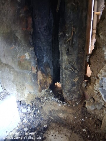![]() ![]() ![]() ![]() | Einsatz für den Fachberater Bau/Statik nach Lauffen. Statische Beurteilung nach Schwelbrand im Ständerwerk eines Wohngebäudes in direkter Nähe des Kachelofens. Der betroffene Eichenpfosten wurde durch die Feuerwehr Lauffen großzügig eingekürzt und fachmännisch mittels Bausprieß gesichert. | |