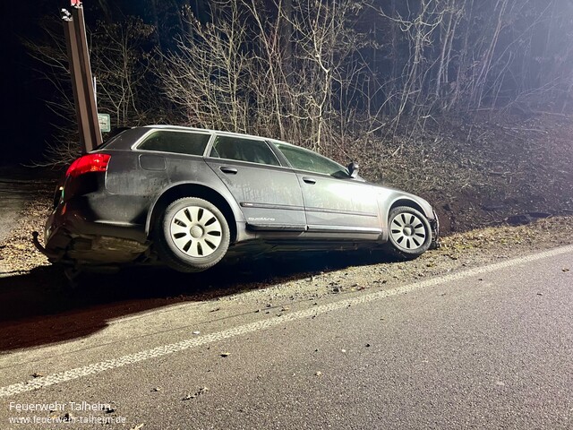 ![]() | Zu einem gemeldeten Fahrzeugbrand wurde die Feuerwehr Talheim am 24.1.2026 an den Kreisverkehr an der Waldkreuzung im Bereich K 2155 gerufen. Ein Audi Kombi war, ohne fremdeinwirkung in den Straßengraben geraten und dort liegen geblieben. Die zuerst eintreffende Polizeistreife stellte eine Rauchentwicklung im Bereich der Motorhaube fest. Die Feuerwehr Talheim kontrolliert den Motorraum und klemmte die Batterie des verunfallten Fahrzeuges ab und übergab ihm Anschluss die Einsatzstelle an die Polizeistreife. | |||
